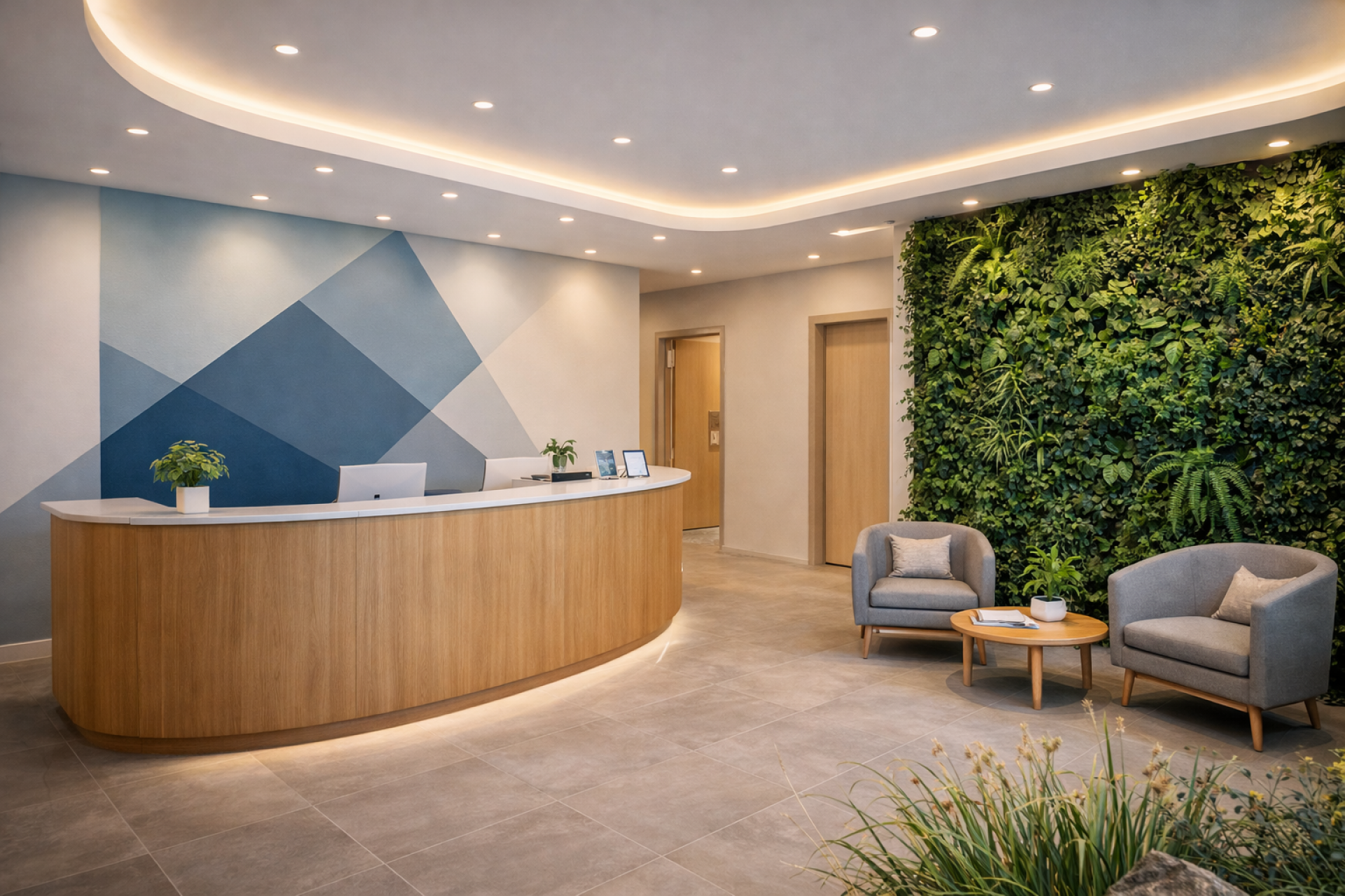 Nosso projeto partiu de um conceito de "jornada do paciente": desde a recepção acolhedora até as salas de atendimento, passando pelos corredores — cada detalhe foi pensado para transmitir calma, confiança e profissionalismo.